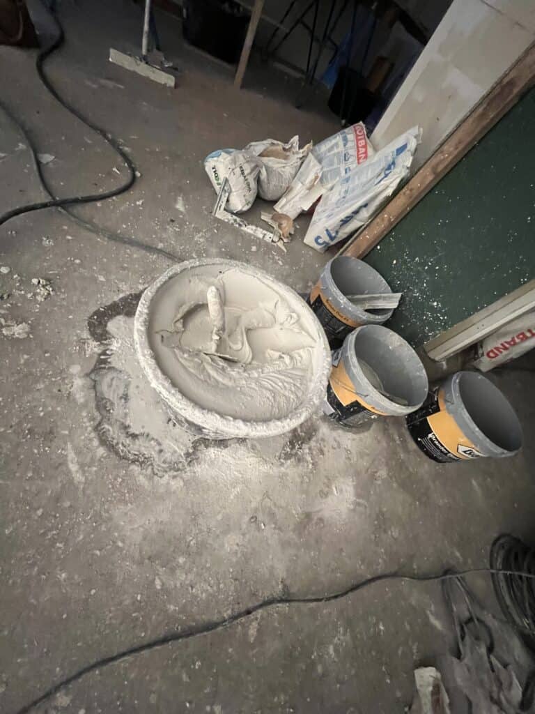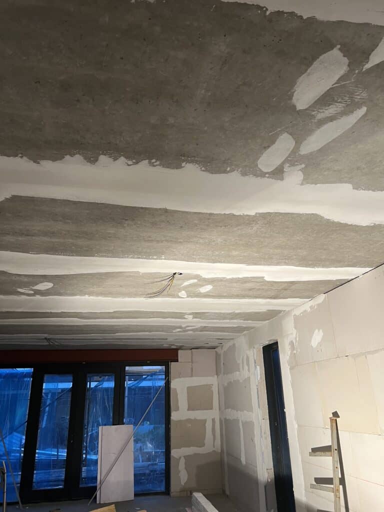 Het spuiten van het plafond zal door iemand anders worden gedaan. Morgen gaat de stukadoor boven verder.